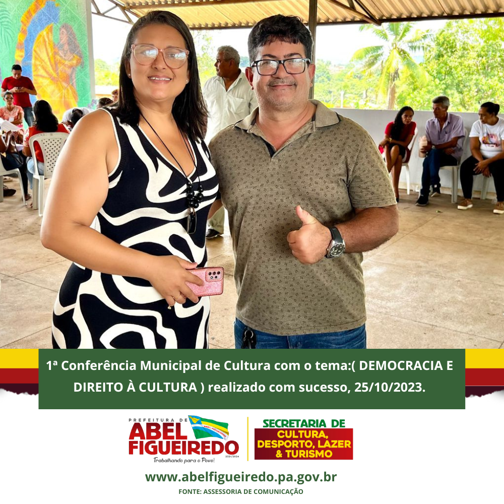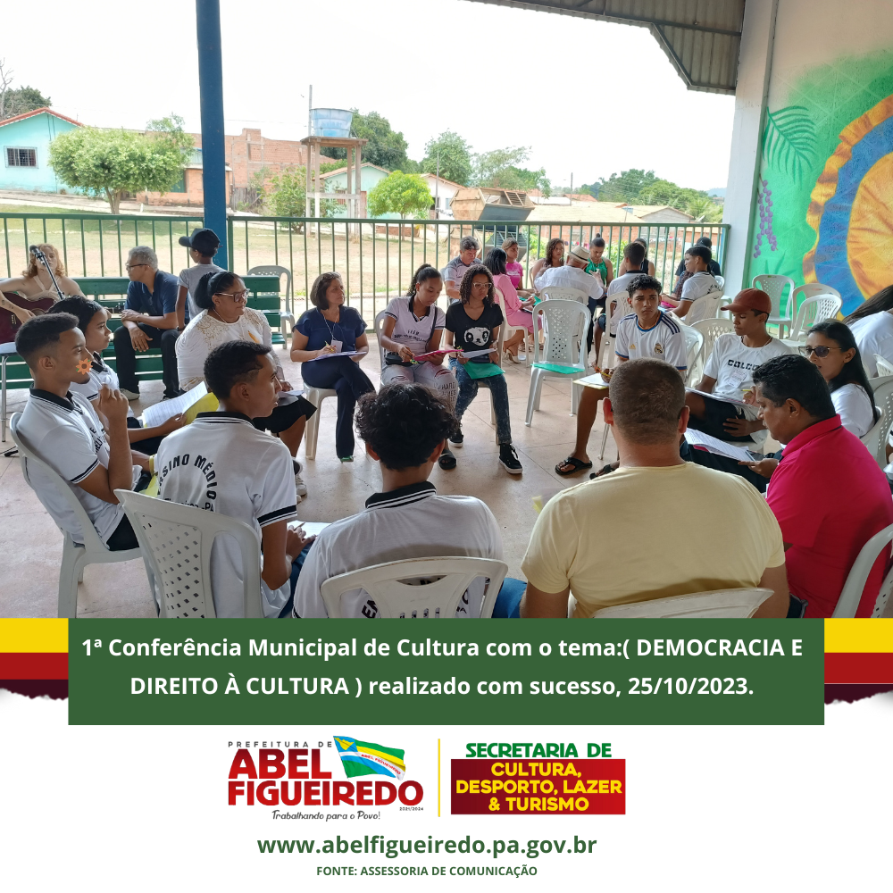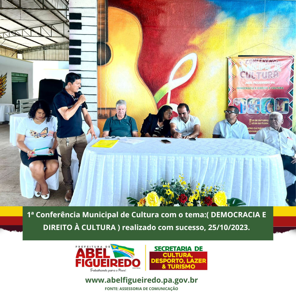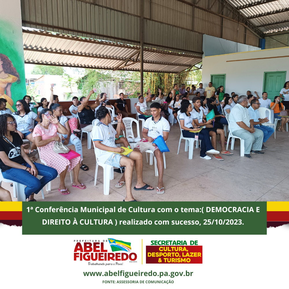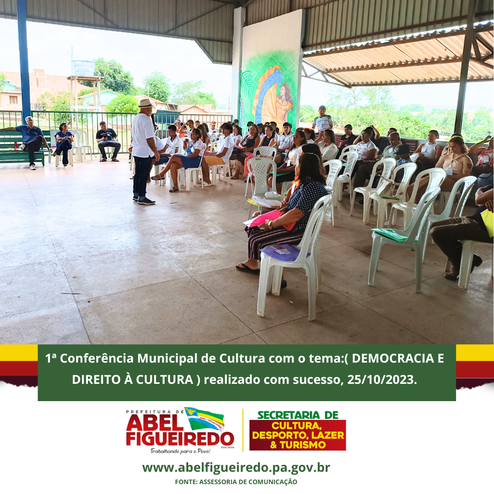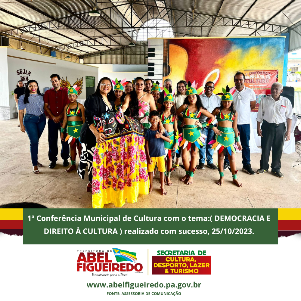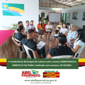 A Prefeitura de Abel Figueiredo, administração Prefeito Antônio Calhau vice Evandro da Serraria, por meio da Secretaria Municipal de Cultura, Desporto, Lazer e Turismo, Secretária Niramar Furlan e equipe, realizaram nesta última quarta-feira 25 de outubro, a 1° Conferência Municipal de Cultura com o tema: (Democracia e Direito à Cultura).