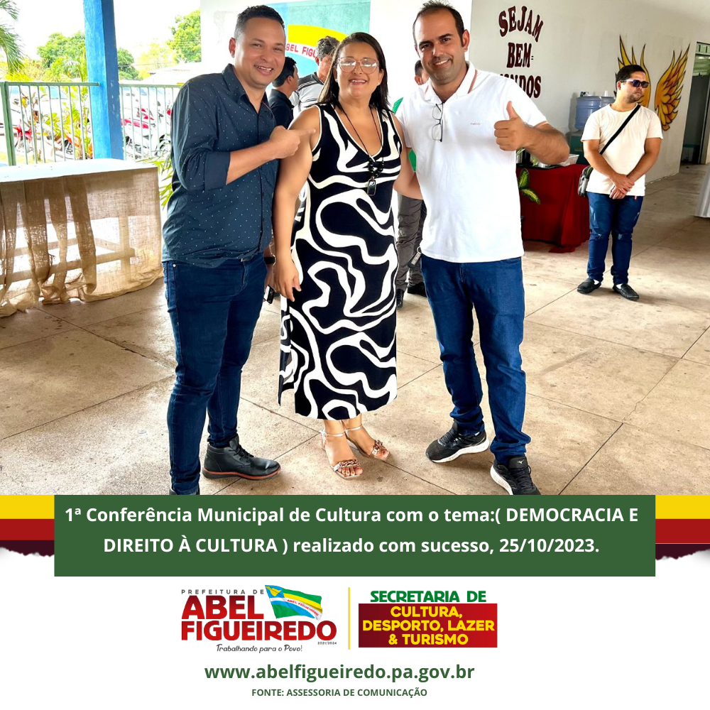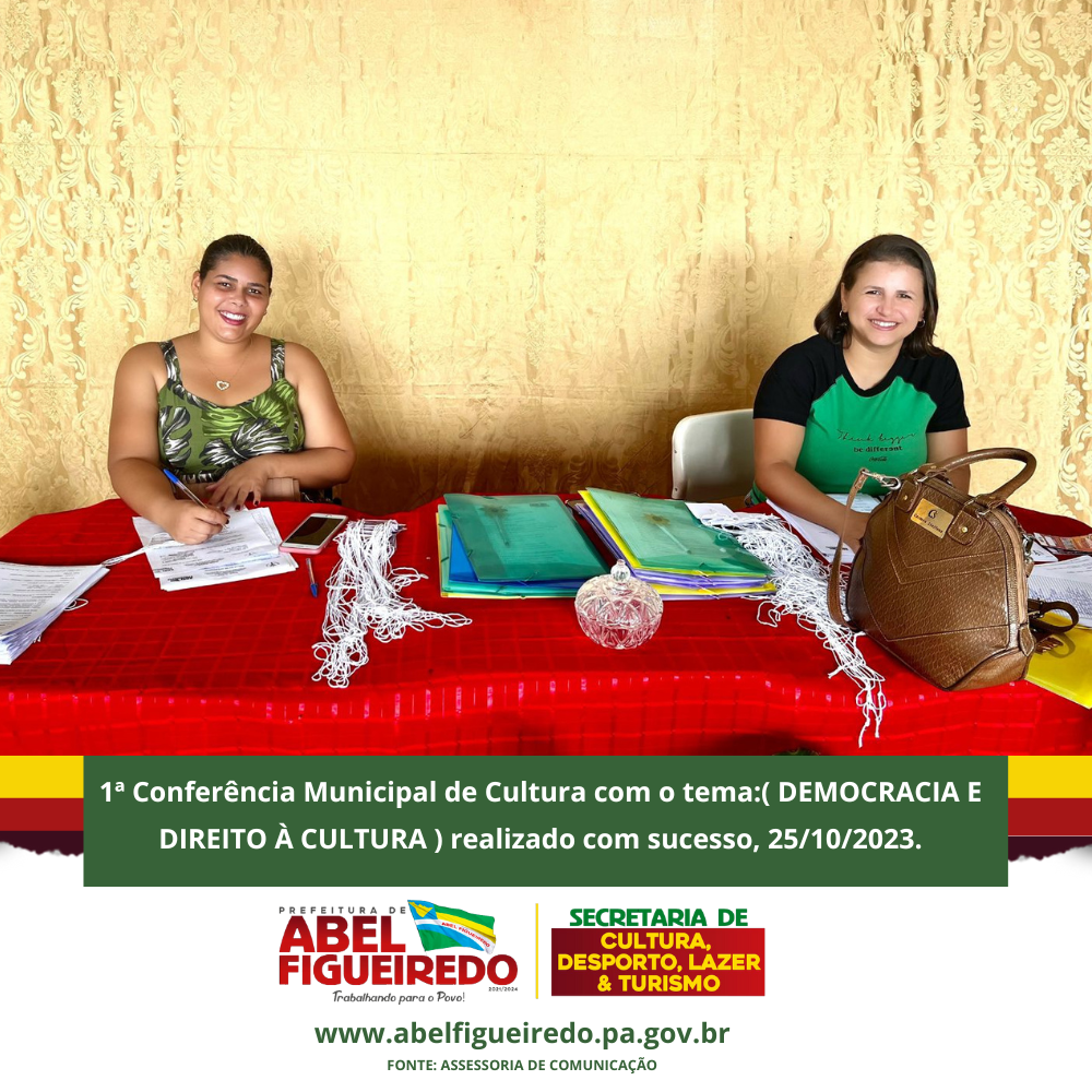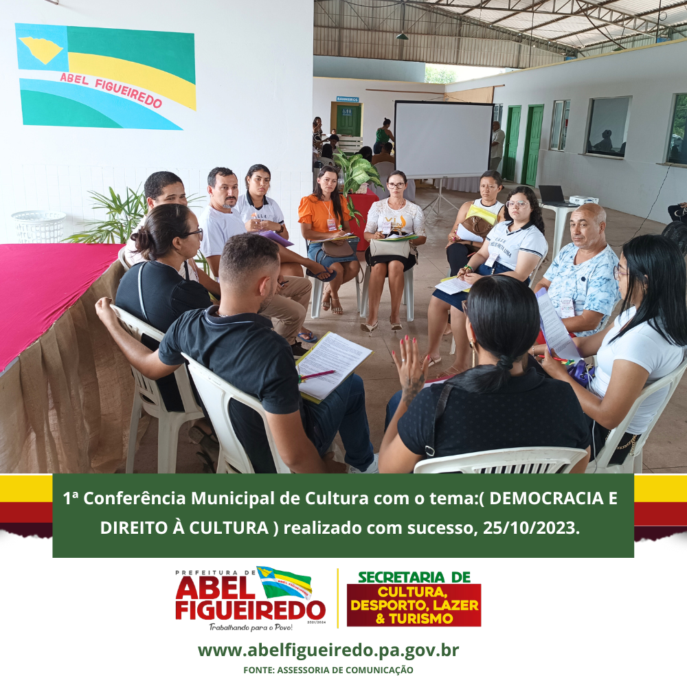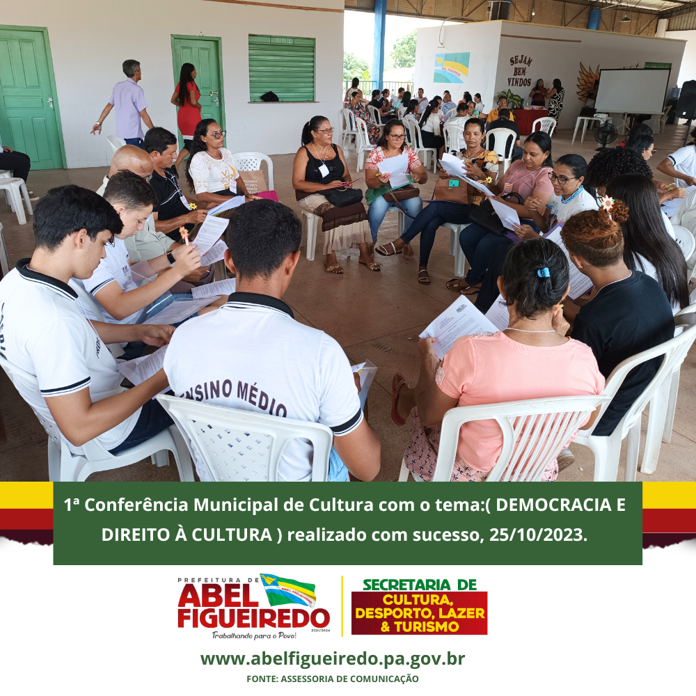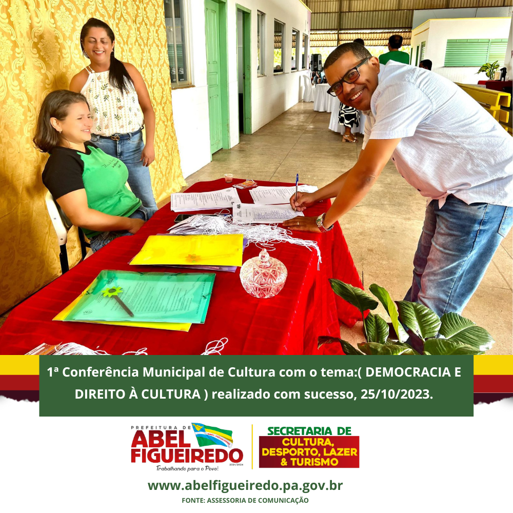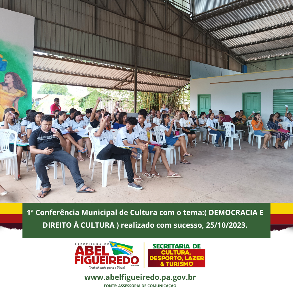 A Prefeitura de Abel Figueiredo, administração Prefeito Antônio Calhau vice Evandro da Serraria, por meio da Secretaria Municipal de Cultura, Desporto, Lazer e Turismo, Secretária Niramar Furlan e equipe, realizaram nesta última quarta-feira 25 de outubro, a 1° Conferência Municipal de Cultura com o tema: (Democracia e Direito à Cultura).