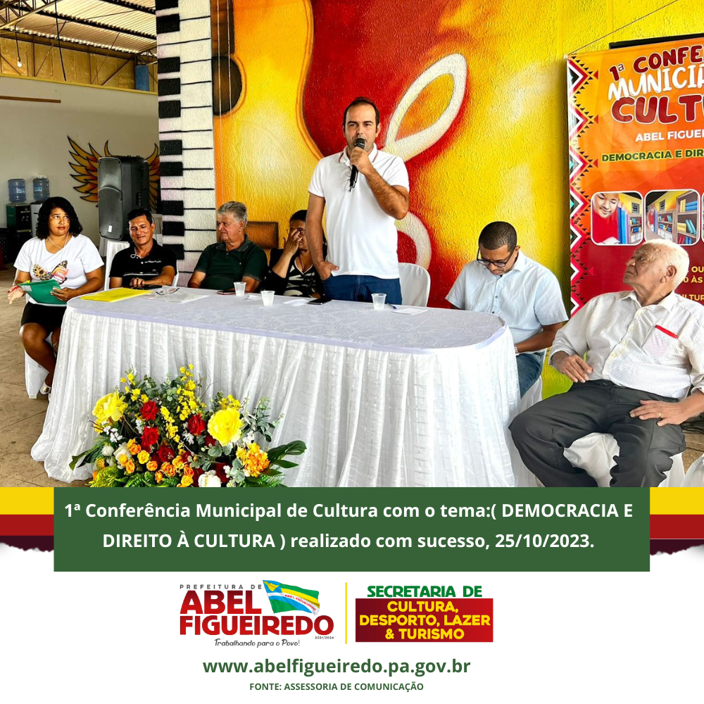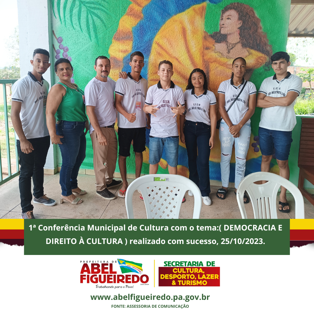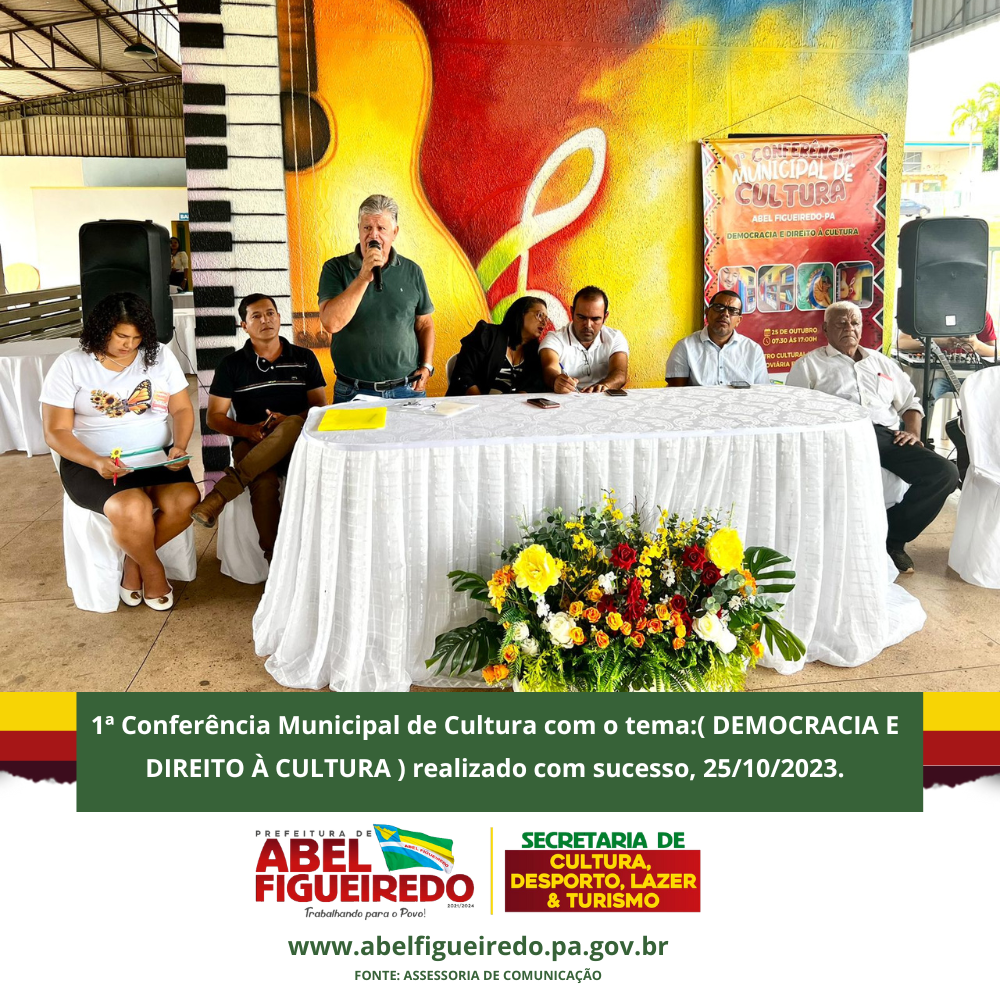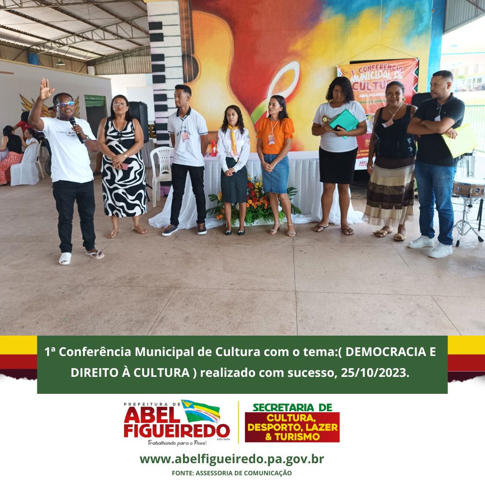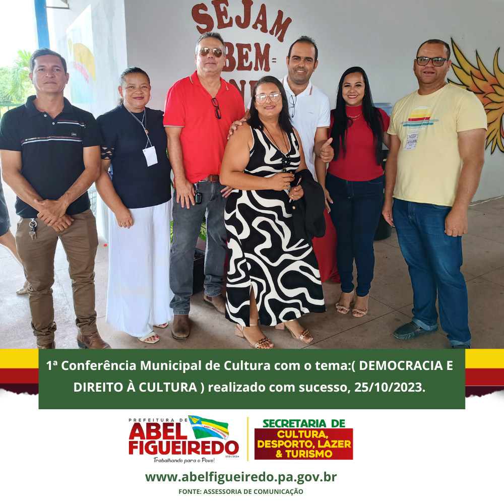 A Prefeitura de Abel Figueiredo, administração Prefeito Antônio Calhau vice Evandro da Serraria, por meio da Secretaria Municipal de Cultura, Desporto, Lazer e Turismo, Secretária Niramar Furlan e equipe, realizaram nesta última quarta-feira 25 de outubro, a 1° Conferência Municipal de Cultura com o tema: (Democracia e Direito à Cultura).
