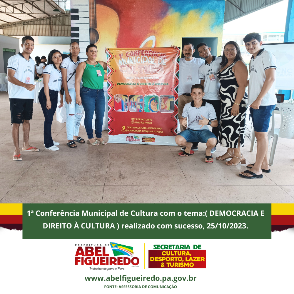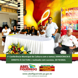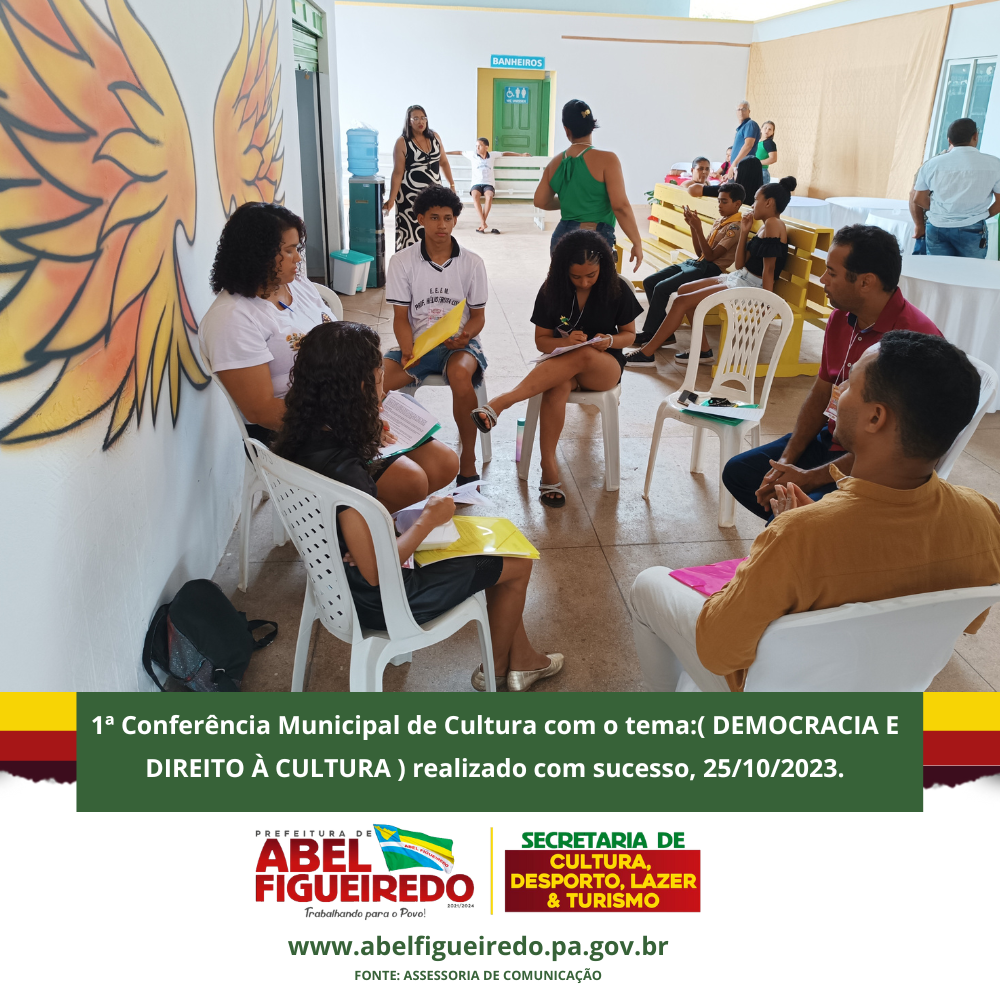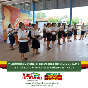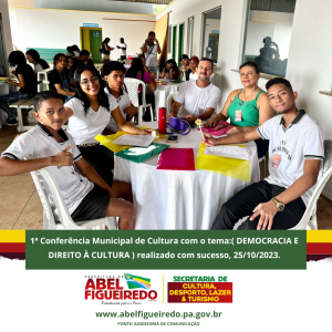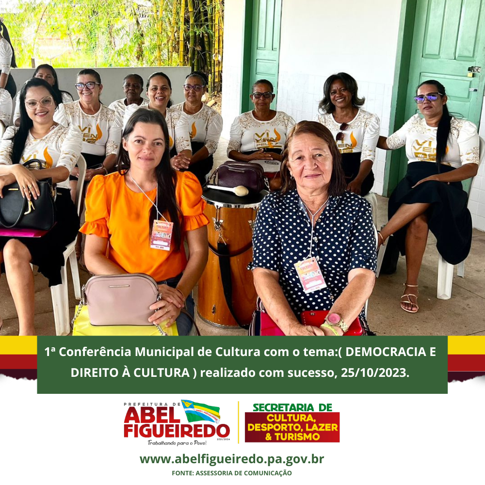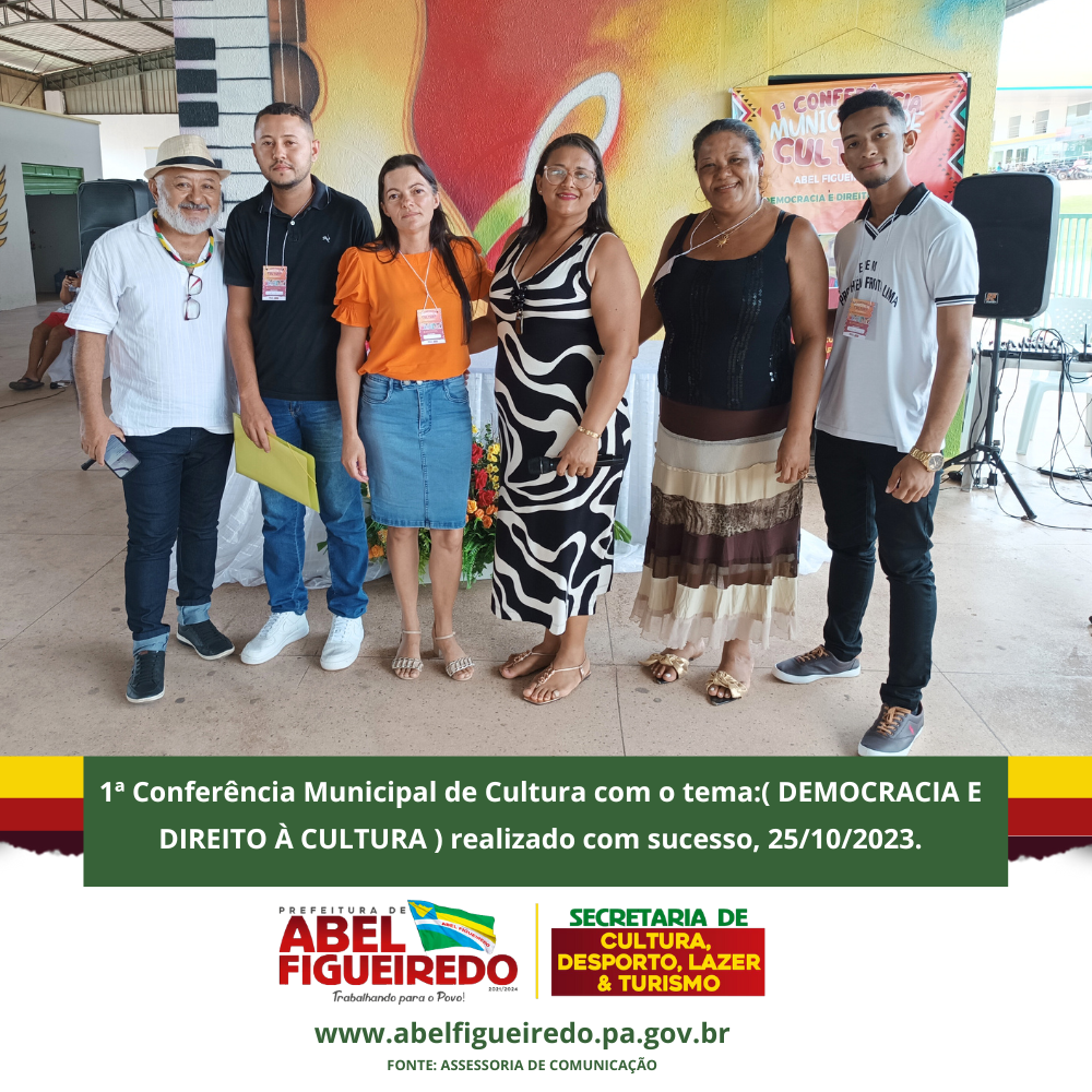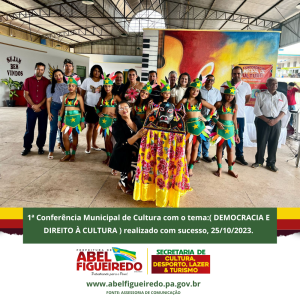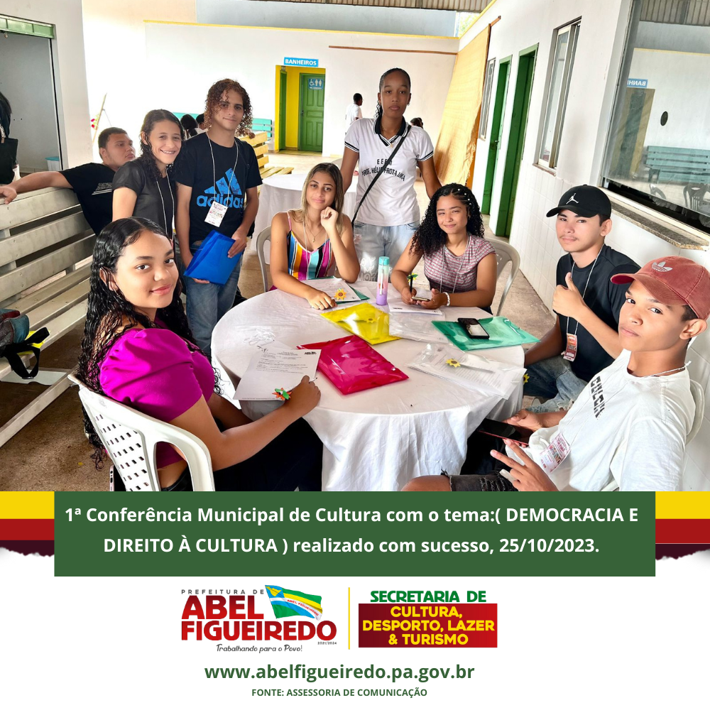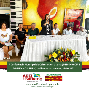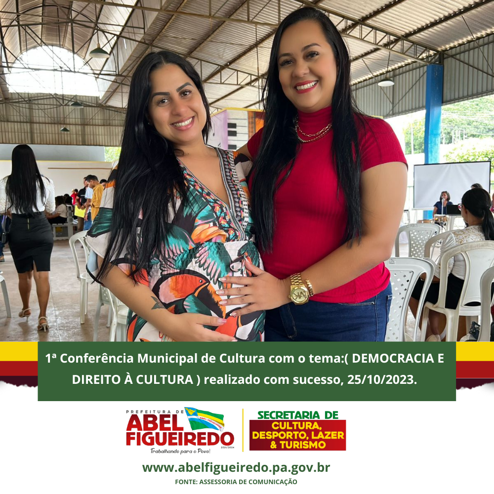 A Prefeitura de Abel Figueiredo, administração Prefeito Antônio Calhau vice Evandro da Serraria, por meio da Secretaria Municipal de Cultura, Desporto, Lazer e Turismo, Secretária Niramar Furlan e equipe, realizaram nesta última quarta-feira 25 de outubro, a 1° Conferência Municipal de Cultura com o tema: (Democracia e Direito à Cultura).