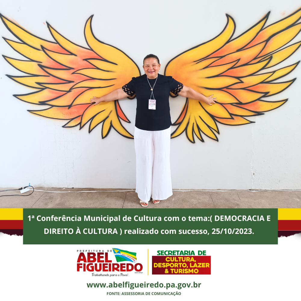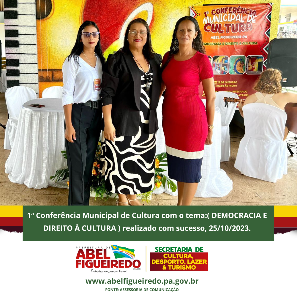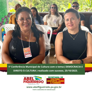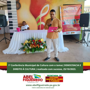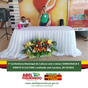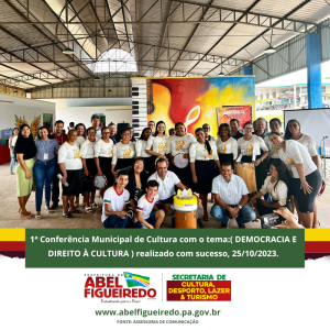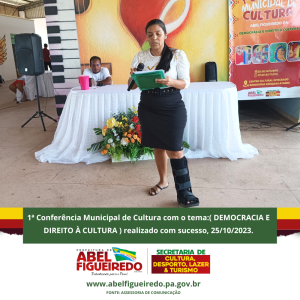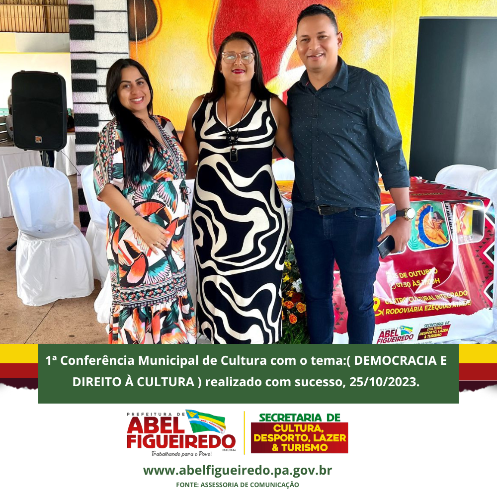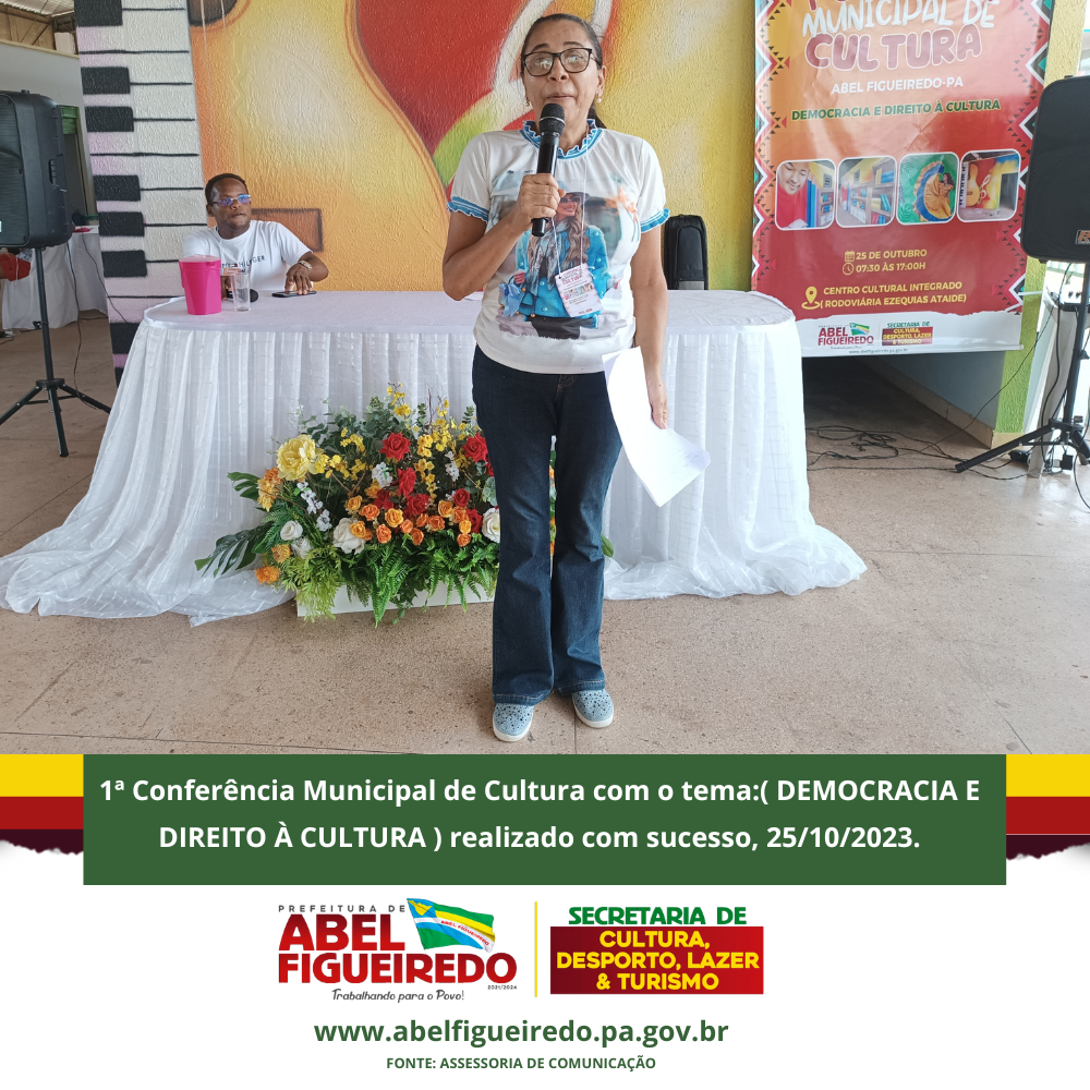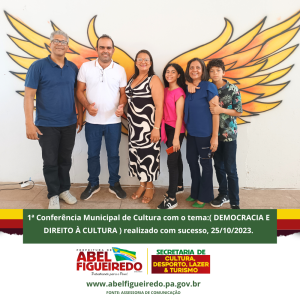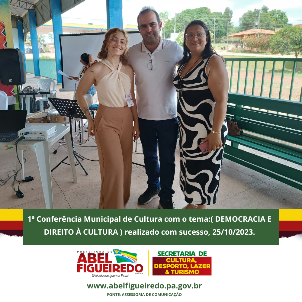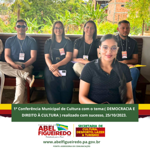 A Prefeitura de Abel Figueiredo, administração Prefeito Antônio Calhau vice Evandro da Serraria, por meio da Secretaria Municipal de Cultura, Desporto, Lazer e Turismo, Secretária Niramar Furlan e equipe, realizaram nesta última quarta-feira 25 de outubro, a 1° Conferência Municipal de Cultura com o tema: (Democracia e Direito à Cultura).