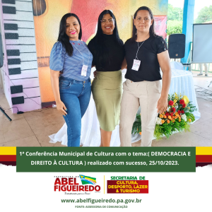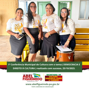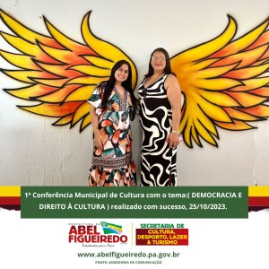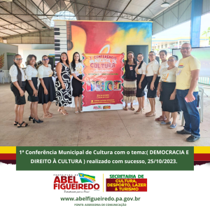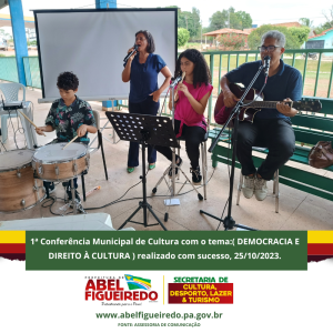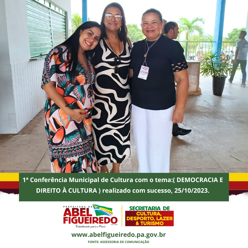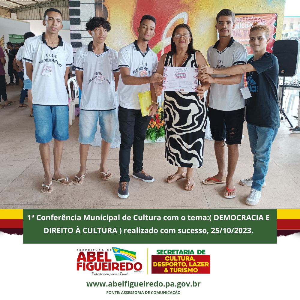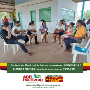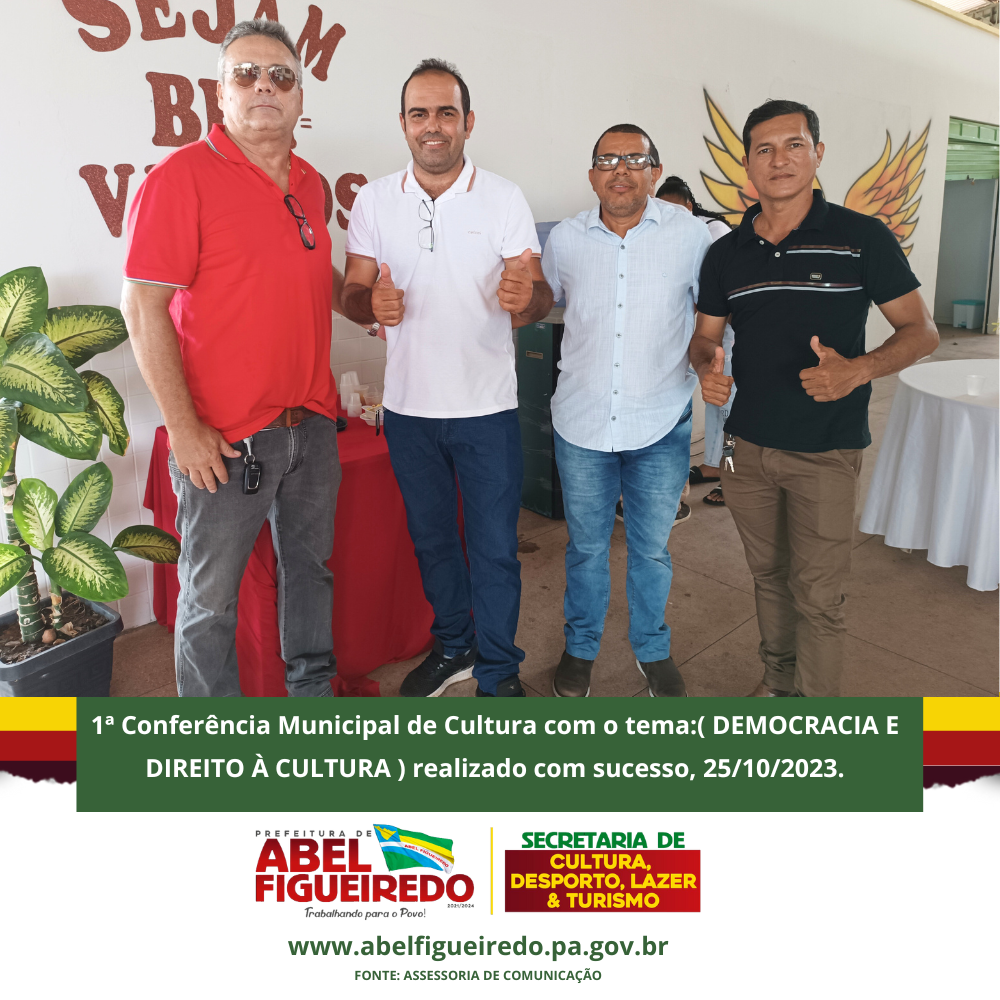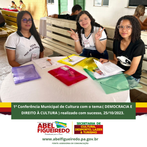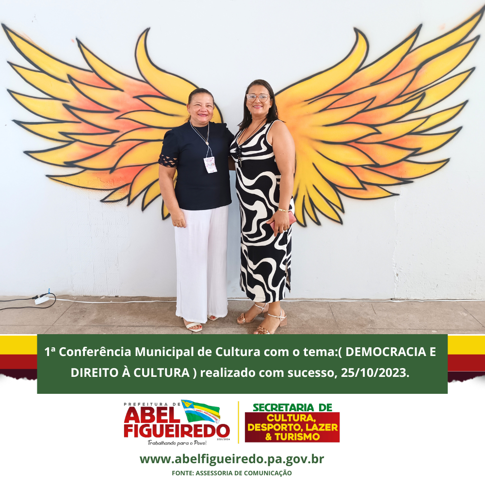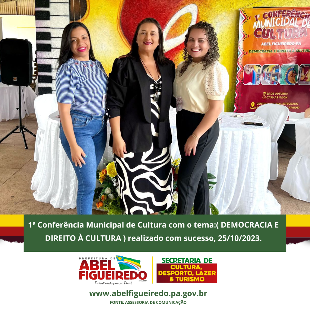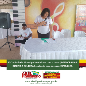 A Prefeitura de Abel Figueiredo, administração Prefeito Antônio Calhau vice Evandro da Serraria, por meio da Secretaria Municipal de Cultura, Desporto, Lazer e Turismo, Secretária Niramar Furlan e equipe, realizaram nesta última quarta-feira 25 de outubro, a 1° Conferência Municipal de Cultura com o tema: (Democracia e Direito à Cultura).