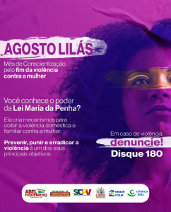 Campanha Agosto Lilás foi criada em referência à sanção da Lei Maria da Penha (Lei Federal nº 11.340/ 2006), assinada no dia 7 de agosto e que este ano completa 17 anos.