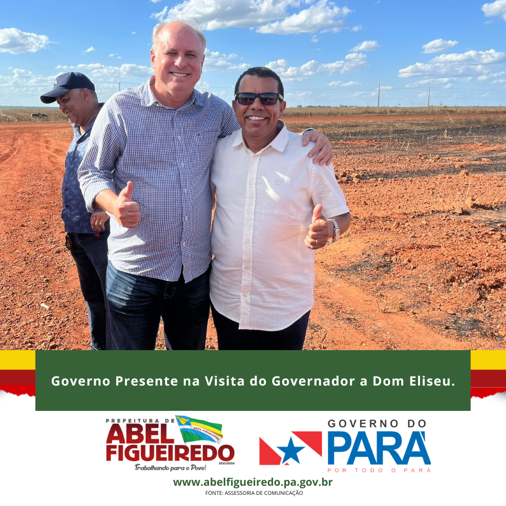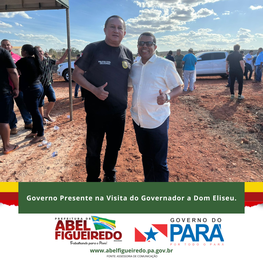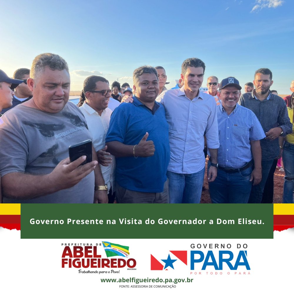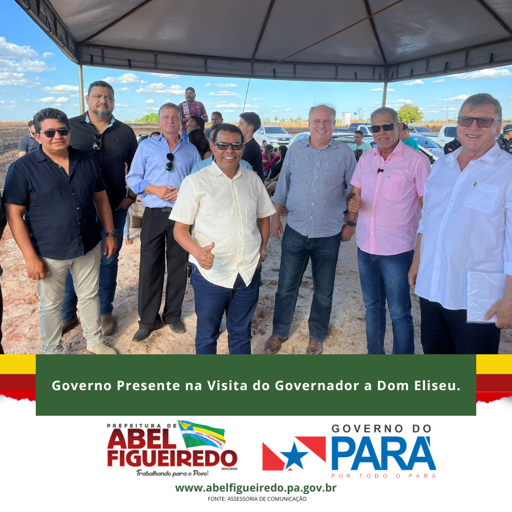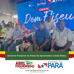 A comitiva de Abel Figueiredo administração Prefeito Antônio Calhau vice Evandro da Serraria, esteve presente em Dom Eliseu na assinatura da ordem de serviço para a construção da Usina da Paz, é o governo do Pará, Governador Helder Barbalho trazendo mais desenvolvimento para nossa região.