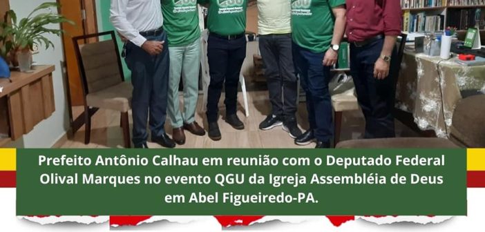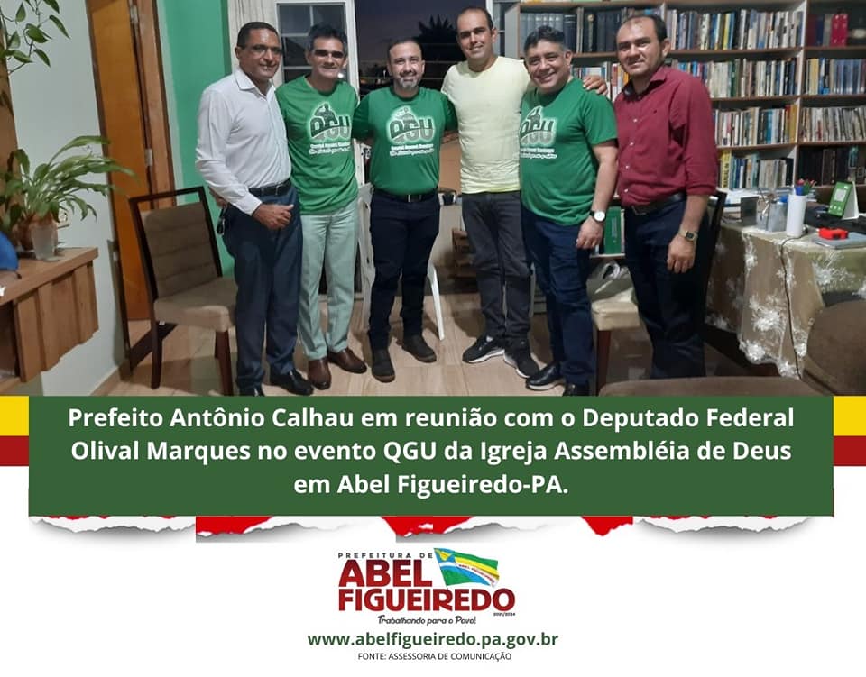 O prefeito Antônio calhau recebeu o deputado federal Olival Marques, em visita à nossa cidade, onde participou do evento QGU que reuniu os jovens da Assembleia de Deus, na oportunidade mais de 700 jovens em um belíssimo evento organizado pela igreja. Nossos parabéns e agradecimento a todos os membros da igreja em nome do pastor Evalderclei Dias, do nosso assessor de governo Isaías Almeida e a todos os visitantes.
