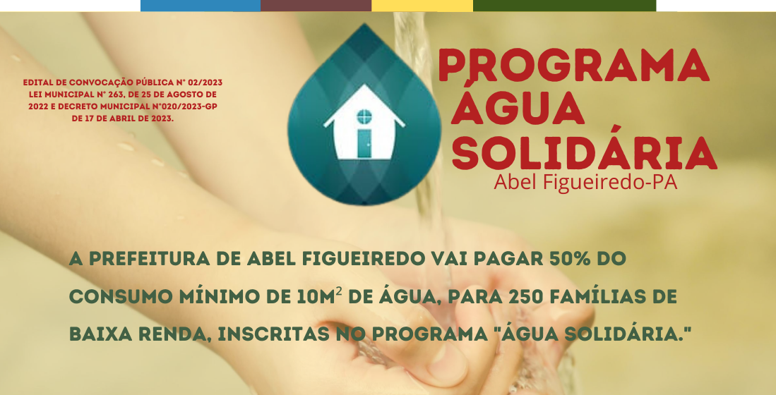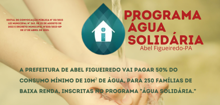 A Prefeitura de Abel Figueiredo vai pagar 50% do consumo minino de 10m2 de água, para 250 famílias de baixa renda, inscritas no Programa Água Solidária.