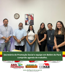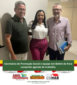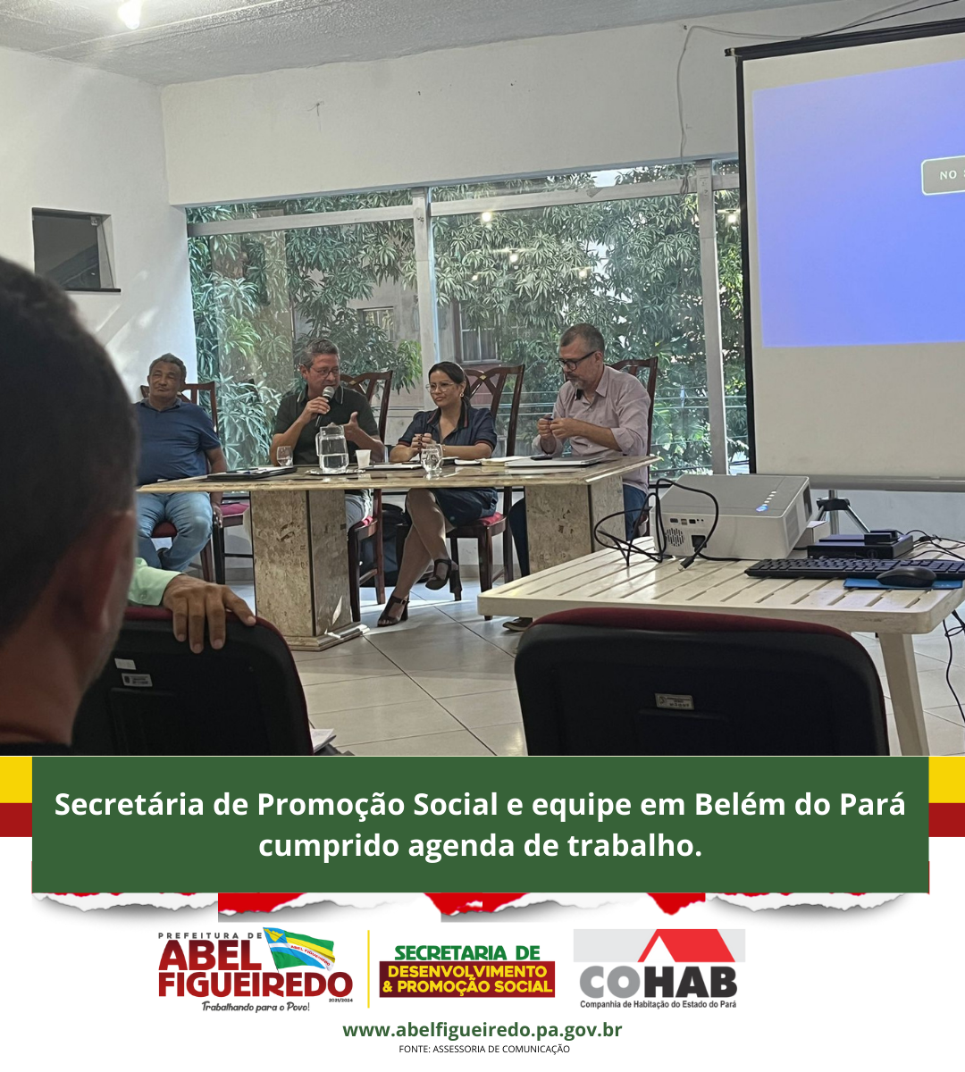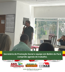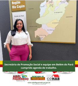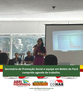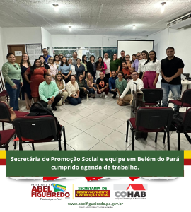 A Prefeitura de Abel Figueiredo administração Prefeito Antônio Calhau vice Evandro da Serraria, esteve representada pela Secretária de Promoção Social Winnie Aylla Barbosa juntamente com a Assistência Social Fabíola Caires e equipe em Belém do Pará para uma capacitação e também em busca de melhorias principalmente no que se refere a habitação e na captação de recursos para os serviços ofertados pela Secretaria.